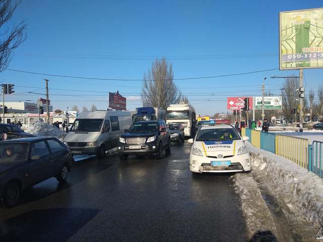 22 марта на перекрестке Донецкого шоссе и улицы Березинской столкнулись КамАЗ, Mercedes Sprinter и МАЗ. В результате аварии пострадал водитель маршрутного такси.