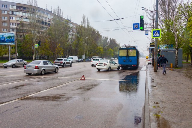 В результате аварии автомобиль Lanos получил значительные повреждения. Об этом Информатор сообщает с места события.По словам водителя троллейбуса, пока он стоял на остановке, в него въехал Lanos.