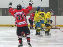 Шайбы: 1:0 – Сыченко (Лаптев, Брага, 00:43 - бол.), 1:1 – Решетников (Кузьмик, 05:40 - бол.), 2:1 – Сыченко (Бурьяненко, Брага, 21.45), 3:1 – Сыченко (Брага, 52.13), 3:2 – Закриничный (И.Сидоров, Рябиков, 56.55).