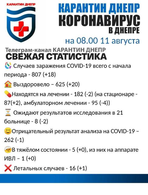 По состоянию на 11 августа в городе зафиксировано 807 лабораторно подтвержденных случаев заболевания коронавирусом, 625 человек с этим диагнозом выздоровели.