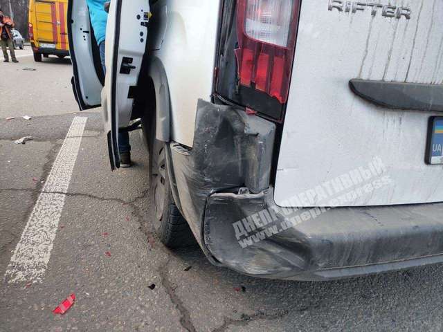 В Днепре сегодня, 19 марта, автомобиль Lexus врезался в автомобиль Peugeot Rifter, водитель которого применил экстренное торможение, пропуская автомобиль, внезапно выехавший с АЗС.