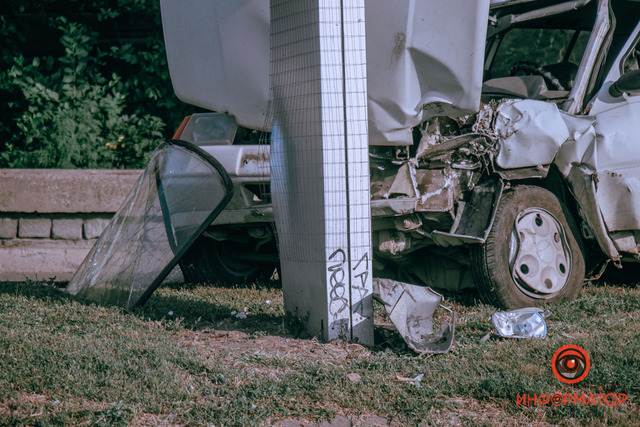 В субботу, 7 августа, возле памятника Славы произошло ДТП. Автомобиль ЗАЗ двигался в сторону проспекта Яворницкого, водитель не справился с управлением и влетел в рекламный билборд. Мужчину из салона доставали спасатели, сейчас он в больнице.