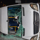 Судя по видео, водитель не справился с управлением, из-за чего Mercedes Sprinter ушёл в занос и врезался в отбойник. После удара микроавтобус лёг на бок.