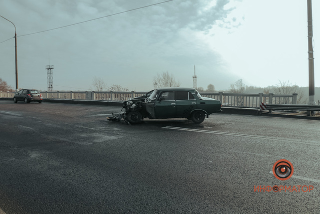 От удара автомобиль начал вращение и пролетел по виадуку несколько десятков метров. К счастью, водитель «Москвича» отделался легким испугом. На данный момент автокрана на месте происшествия нет — водители заключили «европротокол». Левая полоса на виадуке в сторону улицы Криворожской перекрыта. Собирается пробка.
