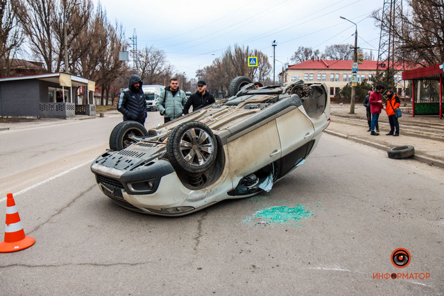 Во вторник, 22 февраля на улицы Данила Галицкого случилось ДТП. Тут перевернулся Peugeot.
