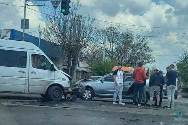 В Днепре на перекрестке улиц Байкальская и Образцова сегодня, 3 марта, в 10:53 произошло ДТП между автомобилями Mercedes и Skoda. Грузовой автомобиль Mercedes при повороте с Байкальской на Образцова не пропустил легковой автомобиль Skoda, в результате чего и произошла авария. При этом, в Mercedes чуть не врезался автомобиль скорой помощи, ехавший за ним.