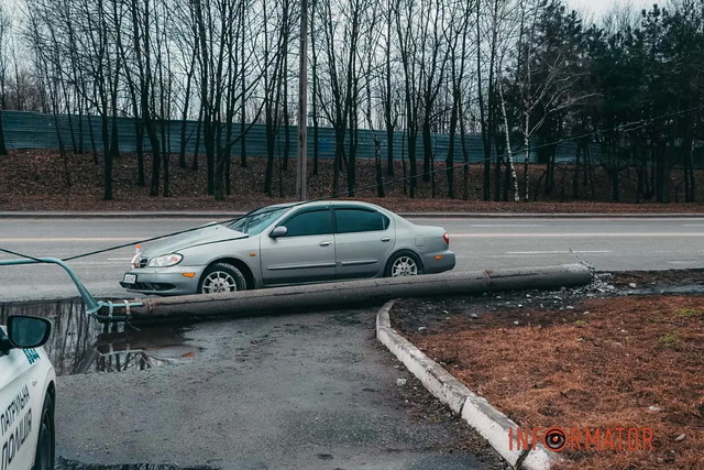 За попередніми даними, все сталося через те, що в машини лопнуло колесо. Від удару стовп впав на землю.
