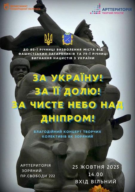 Например, завтра, 25 октября, состоится праздничный благотворительный концерт в арт-территории БК «Зоряний» на проспекте Свободы, 222.
