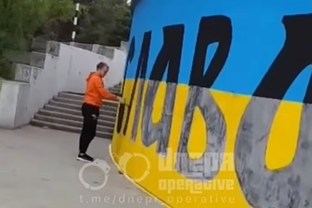 Огромный мурал с надписью «Слава Украине» был создан несколько лет назад под видовой площадкой на Солнечной набережной на одноименном жилмассиве. Он очень ярко смотрится для всех, кто едет по Новому мосту на левый берег нашего города.