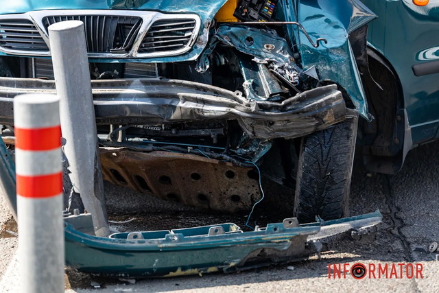 Daewoo їхав по Набережній Перемоги. Біля ЖК “Рівер Парк” водій хотів розвернутись. У цей час по Набережній Перемоги у бік центру їхав Opel. Автівки зіткнулись. Від удару Daewoo врізався в антипаркувальні стовпчики. Усі обставини аварії будуть встановлювати поліцейські.