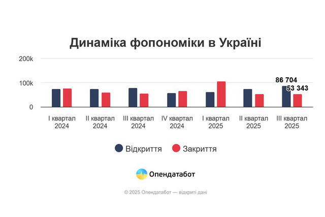 «Плюс 15 тисяч фопів цьогоріч: 225 046 нових фопів було відкрито проти 213 293 закритих. Варто зазначити, що понад 45 тисяч фопів, що закрились цьогоріч, були відкриті торік.Найбільше нових підприємців з’явилося: