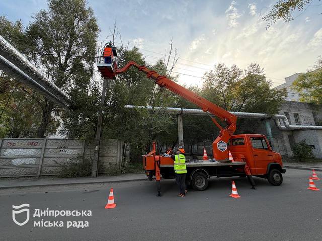 "Мы демонтируем старую кабельную линию и 31 светильник, которые уже исчерпали срок эксплуатации. Устанавливаем новые современные LED-светильники и кабельную линию. Всего будет смонтирован 31 светильник, 31 кронштейн и проложено 1085 метров кабеля из самонесущей изолированной проволоки. Сегодня, 8 октября, начали работы, а завершить планируем до конца месяца. Аналогичные обновления продолжаются по всему городу", - рассказал начальник эксплуатационно-технического района № 3 КП "Горсвет" Днепровского городского совета Олег Коротушенко.