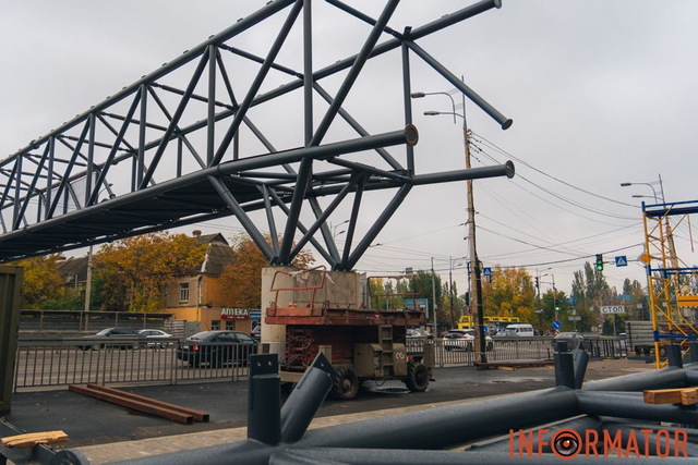 В Днепре на Слобожанском проспекте начали монтаж надземного перехода.