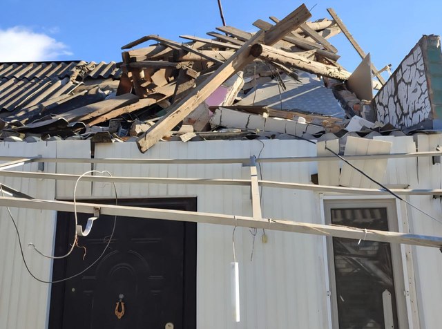 Повреждены 2 частных дома. Повреждены 2 авто, еще одно - уничтожено. Загорелось не эксплуатируемое здание.