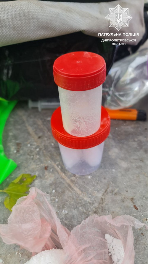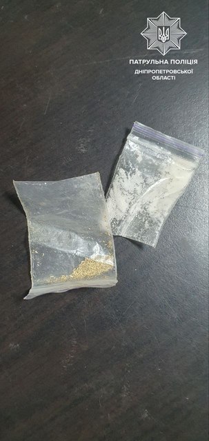 Слип-пакет и две пластиковые емкости с веществом кристаллического происхождения, похожим на наркотическое, патрульные обнаружили у жителя Днепра, которого остановили во время отработки вызова об ограблении на проспекте Слобожанском.
