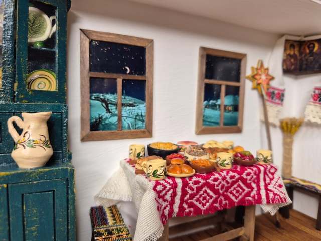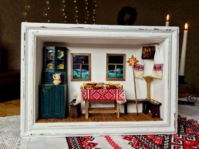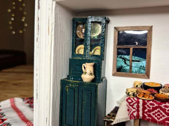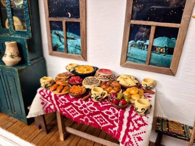 У цій мініатюрі я хотіла передати саме ту мить: тепло родинного столу, вишиті рушники, світло з вікна, запах узвару і пампушок.
