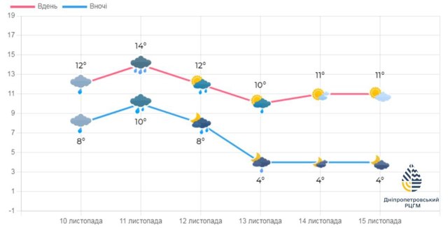 В начале недели, 11-12 ноября, прохождение циклона с юго-запада с активными атмосферными фронтами обусловит дожди, 11 ноября значительные.