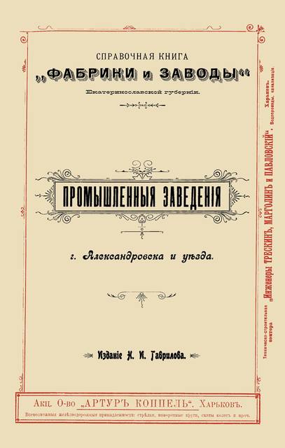 «Фабрики и заводы: Справочная книга Екатеринославской губернии / изд. Н.И. Гаврилов. – Екатеринослав: Тип. Братства Св. Владимира, 1902. – 310 с.