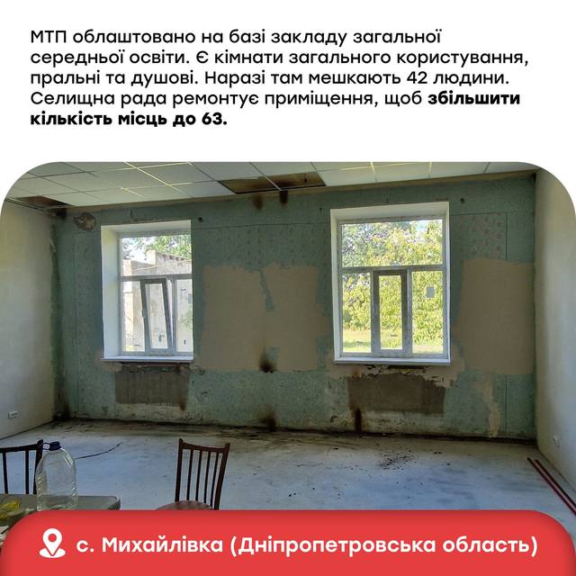 «Ми обрали приміщення, уклали договори з підрядниками і розпочали виконувати ремонтні роботи, які плануємо завершити протягом 2-3 місяців. Це дасть змогу створити 350 додаткових місць для безпечного проживання людей. Кількість запитів на евакуацію постійно зростає – у прифронтових регіонах стає дедалі небезпечніше, тому важливо мати більше готових просторів для розселення», – зазначила менеджерка проєкту Анастасія Калініна».