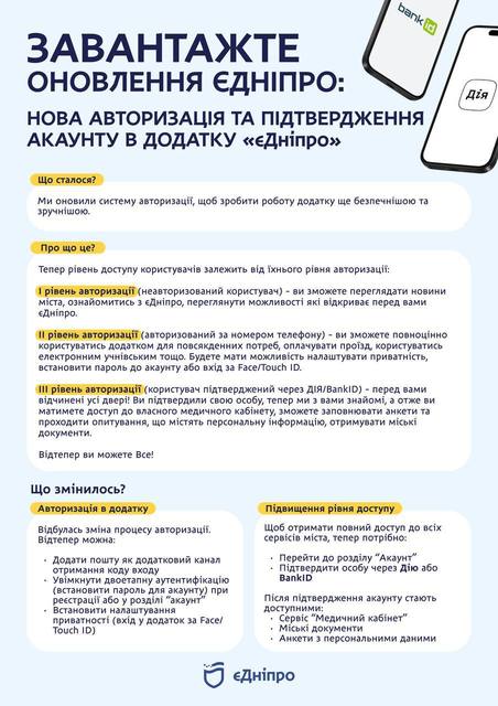 В приложении «Днепр» обновлена система авторизации.