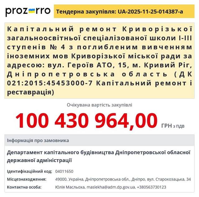 Заказчиком работ выступает Департамент капитального строительства Днепропетровской ОВА. На эти цели готовы потратить больше 100 миллионов гривен.