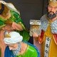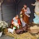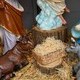 В композиции – Мария, Иосиф, младенец Иисус, ангел, волхвы и животные. Вертеп окружен белыми хризантемами и соломой, что делает локацию еще более уютной.