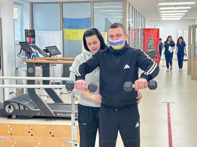 В Днепре в городском реабилитационном центре помогают восстановиться бойцу, пережившему огнестрельное ранение