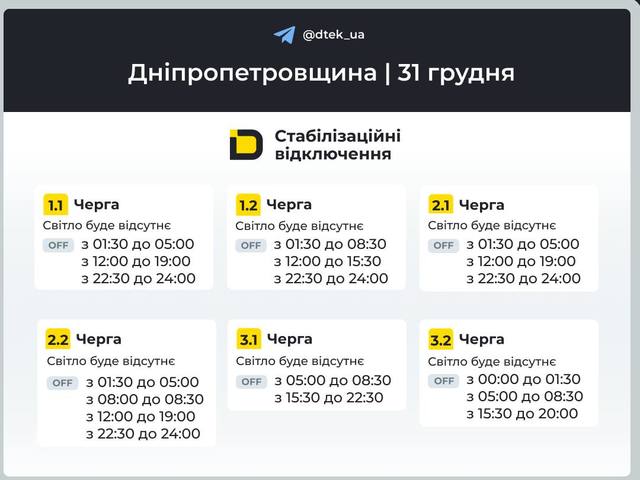 Внимание! Время и объем ограничений могут измениться. Следите за информацией на официальных страницах ДТЭК, ЦЭК.