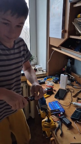 Отец мальчика поделился этим в соцсетях, отметив: «И кого эти рашистские … хотят сломать? Мой 12-летний сын соорудил ручной мини-электрогенератор — заряжает себе аккумуляторы».