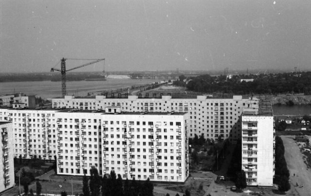 «9 січня. Близько парку імені Леніна над Дніпром закладається фундамент дев'ятиповерхового будинку. Скоро трест «Днепрожилстрой» почне споруджувати будинок – первісток нового мікрорайону. Там, де раніше були Диевские плавні, зараз намивають пісок. Протягом 4-х кілометрів буде споруджено 420 тисяч квадратних метрів житла, школи, дитячі комбінати, магазини, столові».