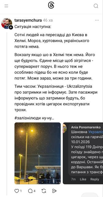 Між тим, група пасажирів чекала у Холмі на цей же поїзд, щоб поїхати з Польщі до України. Люди опинилися у складній ситуації оскільки на станції ремонтується вокзал, а наявні тимчасові приміщення не розраховані на велику кількість пасажирів. Тож комусь довелося мерзнути на вулиці за температури -10 градусів.