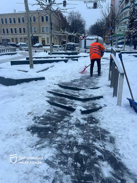 В Днепре коммунальные службы работают в усиленном режиме и непрерывно очищают дороги и тротуары, а также обрабатывают покрытие противогололедными материалами.
