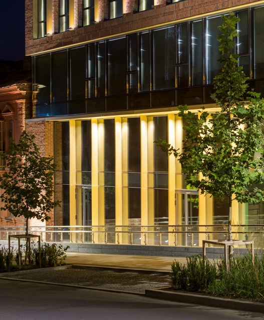 У світловому рішенні ми працювали з вертикальними лініями фасаду, м’якими акцентами на віконних площинах та поєднанням спрямованого й прихованого світла.