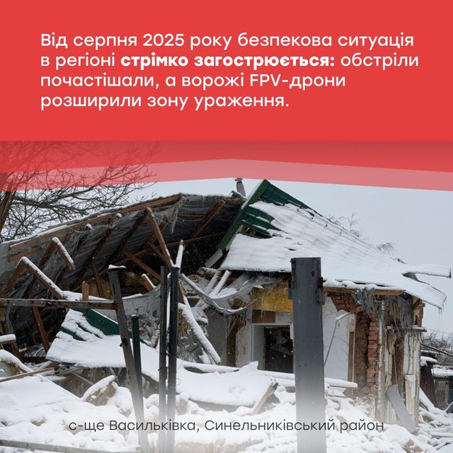 Від липня 2025 року було оголошено обов’язкову евакуацію у примусовий спосіб дітей із батьками чи іншими законними представниками з п’яти громад Синельниківського району. За пів року масштаби евакуації зросли більш ніж удвічі – з п’яти до одинадцяти громад.