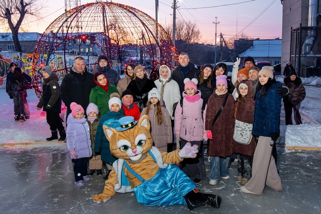 Першими на лід вийшли казкові персонажі: Пан Коцький та слобожанський хокеїст Гуржик, які у жартівливій формі продемонстрували можливості ковзанки та створили святковий настрій для відвідувачів.
