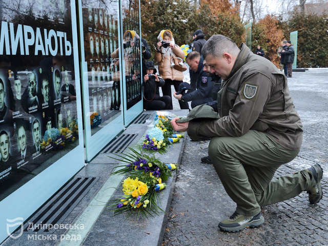 Утром в Днепре к Аллее памяти пришли жители, руководители города и области, военные и силовики.