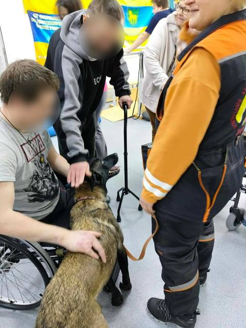 «Кінологи Павлоградський пошуково - рятувальний кінологічний загін "Антарєс." завітали туди, де нас, з нашими чотирилапими янголами - завжди чекають. Там, де нам завжди раді - до нашого, вже "рідного" відділення реабілітації Відділення ФРМ "МКЛ 4" Дніпро "Recovery".Наших чотирилапих терапевтів та собак психологічної підтримки там знають "в обличчя". Тож, мульті дисциплінарна команда спеціалістів центру підбирає собаку для кожного конкретного випадку. Її спеціалісти: психологи, фізичні терапевти, ерготерапевти, реабілітолог залучають можливості та потенціал кожного чотирилапого в процесі реабілітації пацієнтів.
