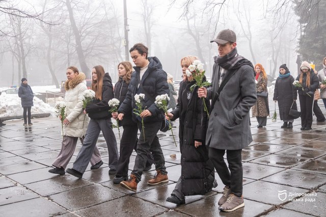Представители городской и областной власти, активная молодежь собрались возле памятника Дмитрию Яворницкому, чтобы возложить цветы и почтить подвиг студентов, которые более столетия назад встали на защиту украинской государственности.
