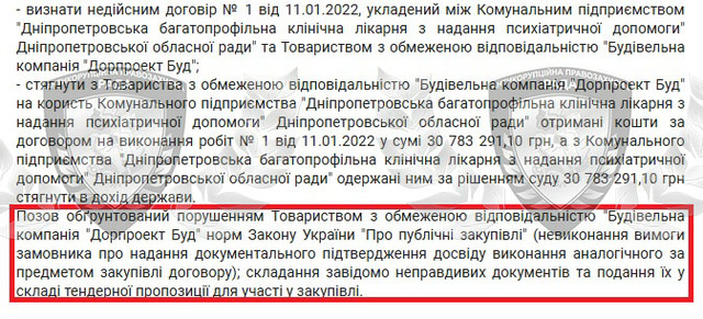 Окрема деталь — ТОВ «Будівельна компанія Дорпроект Буд».