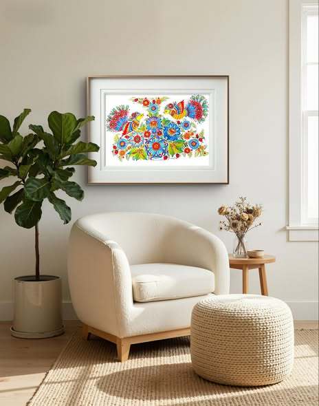 «Яскраві барви, що оживляють простір.Народний мотив у сучасному виконанні — коли мистецтво стає частиною щоденного життя.