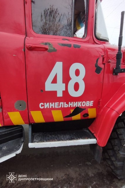 Під час ліквідації пожежі у Синельниківському районі внаслідок повторної атаки БпЛА пошкоджений пожежний автомобіль.