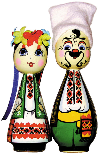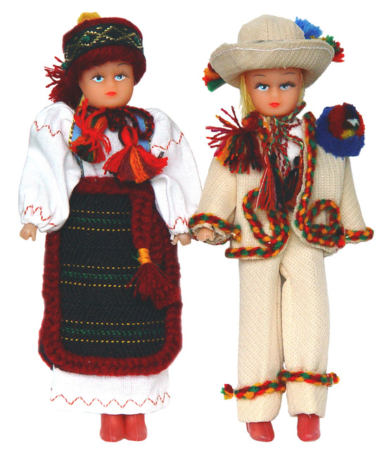 В 2003 г. во время отдыха в Крыму я познакомилась с врачом Марией Гуменюк и ее дочкой Надей. Была очарована эрудицией, знаниями и добрым отношением этих славных украинок. Надя закончила музыкальную школу по классу бандуры, пишет стихи. Для нашего каталога Мария в 2003году написала: «Моя самая большая мечта -жить в богатой, независимой Украине». Благодаря Марии и Наде в нашей коллекции появились куклы из старейшего в Галиции места - Коломыи (первое летописное упоминание о Коломыи найдено в Галицко-Волынской летописи в 1241 г.) Этих кукол сделала Винтоняк Анна Григорьевна – заслуженная художница Украины, член Национального общества художников Украины. Она очень интересный человек. Ею созданы оригинальные, неповторимые коллекции одежды, выполненные в народных художественных традициях края. Она возродила позабытую технику вышивки, ткачества и моделирования. А вся ее деятельность направлена на развитие декоративно-прикладного творчества Украины, особенно народного творчества Покуття.