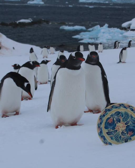 А теперь в Департаменте молодежи Днепра напомнили о том, что в Антарктиде побывала тарелка с нашей знаменитой Петриковской росписью: