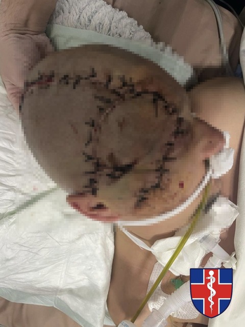 Після проведення інтенсивної терапії пацієнт прийшов до свідомості. Подальший огляд показав повне приживлення клаптів та неврологічний статус з мінімальним дефіцитом. Пацієнт ще продовжує реабілітацію.