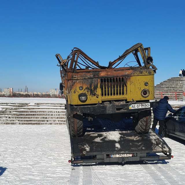 Від музею були представлені технічні засоби, що постраждали у нашому місті внаслідок ракетно-дронових ударів рф: ГАЗ-66Б 1974 року випуску, легковий автомобіль AZLK 2140 1980 року випуску, моторний човен «Прогрес», рейсовий автобус VOLVO.