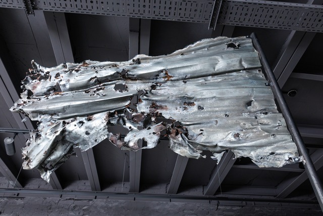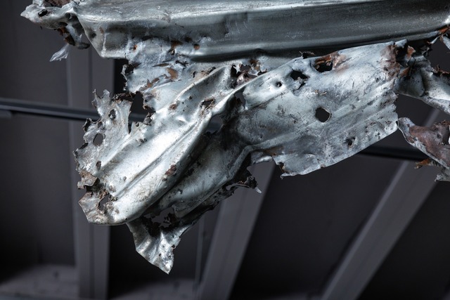 Відтоді художник працює з матеріалами, які були позначені чи трансформовані війною — розплавлені вибухами, розірвані вибуховою хвилею, прошиті кулями. Ця брутально сформована матерія стає основою «прапорів» Кадана: праць, які частково є знайденими об’єктами (found objects), а частково — матеріальними доказами у справі самої війни, яка досі триває.