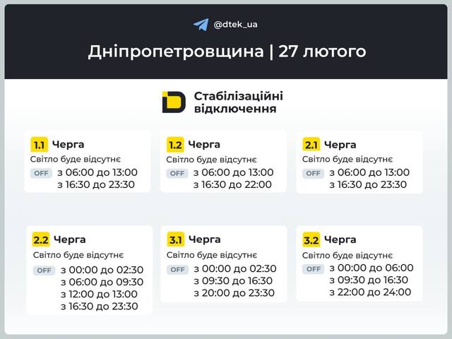 Увага! Час та обсяг застосування обмежень можуть змінитись. Стежте за інформацією на офіційних сторінках ДТЕК, ЦЕК.