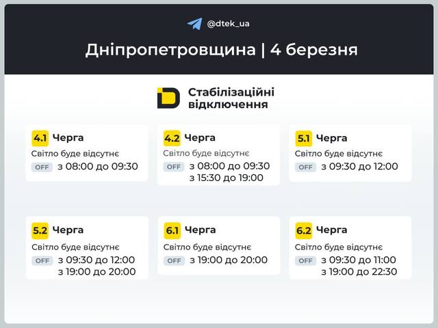Причина введения мер ограничения – последствия российских ракетно-дроновых атак на энергообъекты, – говорится в сообщении Укрэнерго. Внимание! Время и объем ограничений могут измениться. Следите за информацией на официальных страницах ДТЭК, ЦЭК.