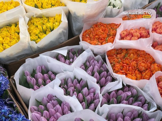 Весна в Днепре принесла яркие краски. На рынке «Озерка» расцвели миллионы цветов: тюльпаны, розы и мимозы заполнили прилавки, образовав настоящее цветочное море. Люди спешат выбрать букеты, чтобы порадовать близких накануне праздников.