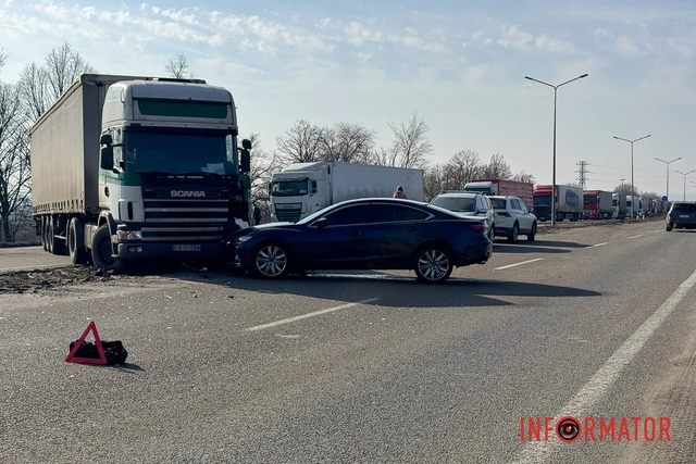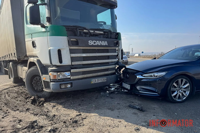 У четвер, 5 березня, під Дніпром зіткнулись дві автівки - фура Scania та Mazda.